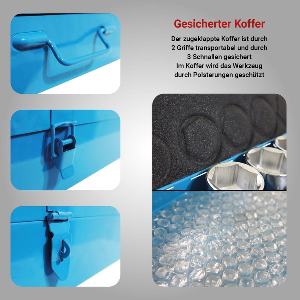 ✅ 2x przedłużka✅ 1x grzechotka 3/4" (prawo/lewo)✅ 1x solidna metalowa walizka