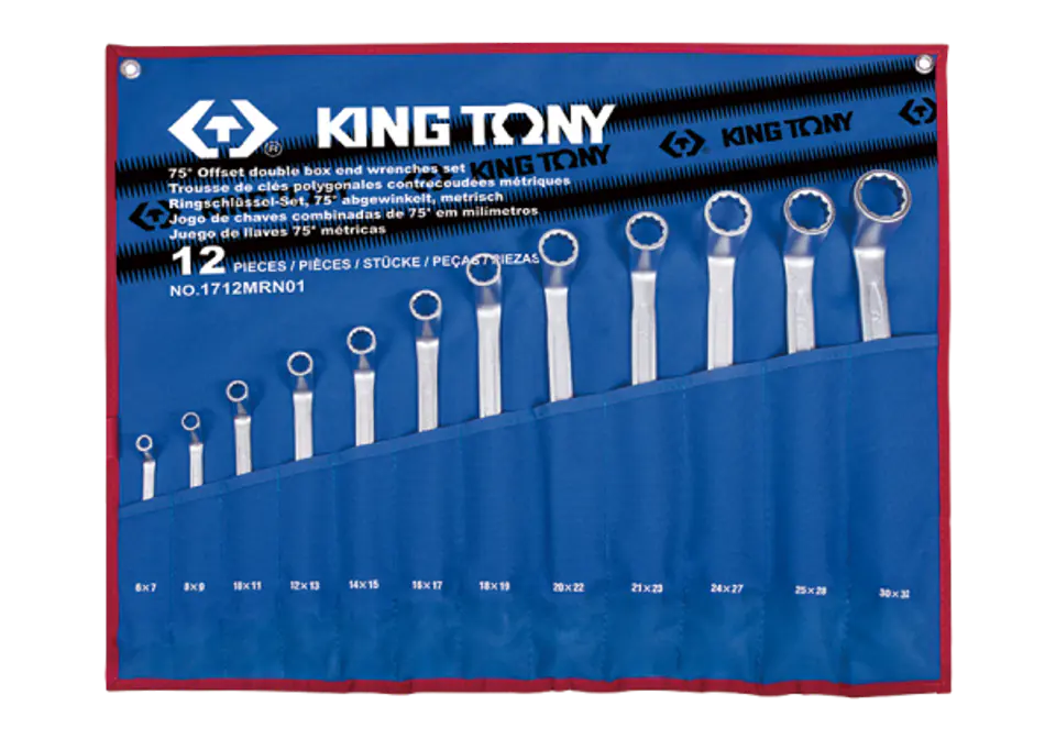 ZESTAW KLUCZY OCZKOWYCH ODGIĘTYCH 75° 12cz. 6 - 32mm, ETUI King Tony