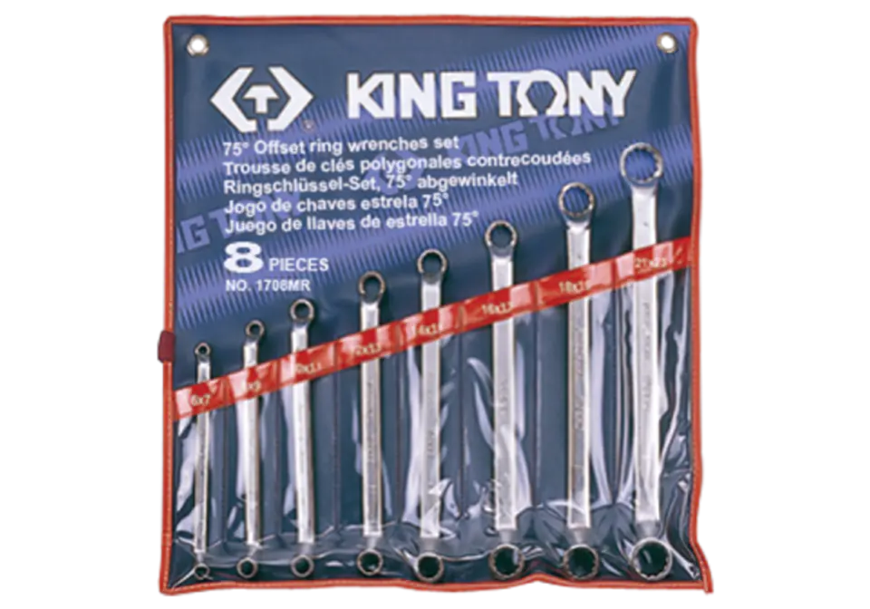 ZESTAW KLUCZY OCZKOWYCH ODGIĘTYCH 75° 8cz. 6 - 23mm, ETUI King Tony