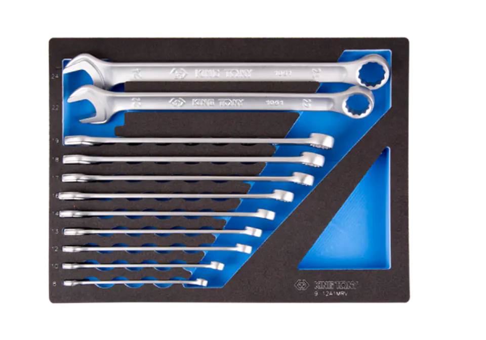ZESTAW KLUCZY PŁASKO-OCZKOWYCH 11cz. 8 - 24mm, WKŁAD Z PIANKI, DO WÓZKA King Tony
