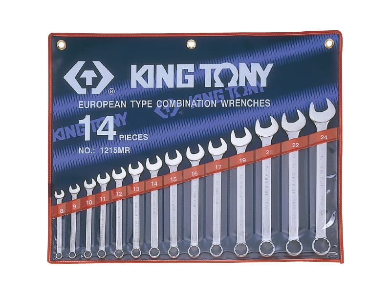 Zestaw profesjonalnych kluczy płasko-oczkowych firmy King Tony. Zestaw w poręcznym etui do powieszenia na ścianie, co czyni go idealnym do pracy w warsztacie czy w garażu. W zestawie znajdują się klucze metryczne o rozmiarach: 8, 9, 10, 11, 12, 13, 14, 15, 16, 17, 19, 21, 22, 24 Karta produktu - 1215MR