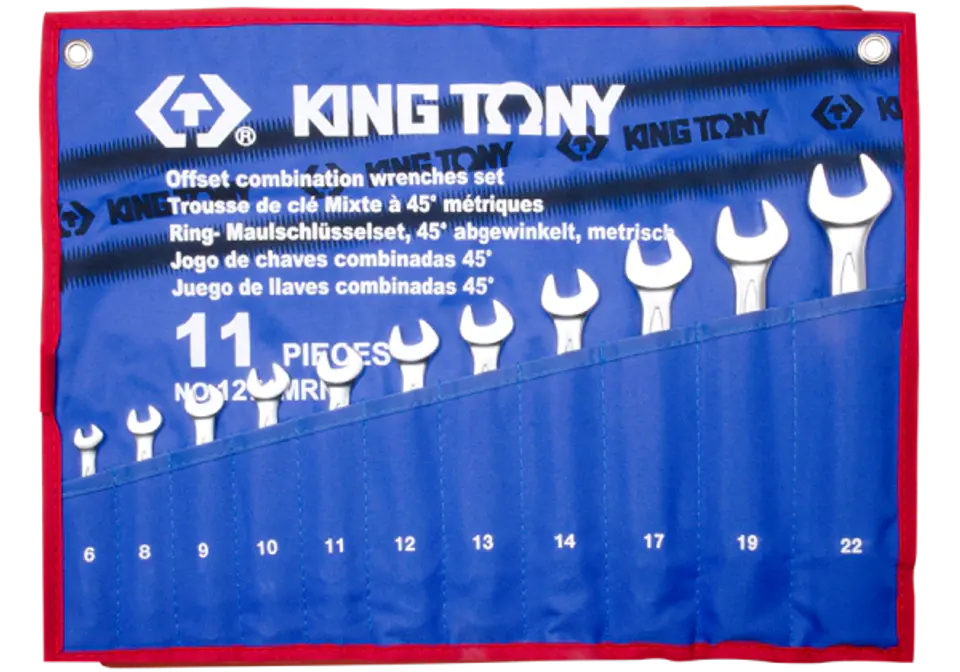 ZESTAW KLUCZY PŁASKO-OCZKOWYCH ODGIĘTYCH 11cz. 6 - 22mm, ETUI King Tony
