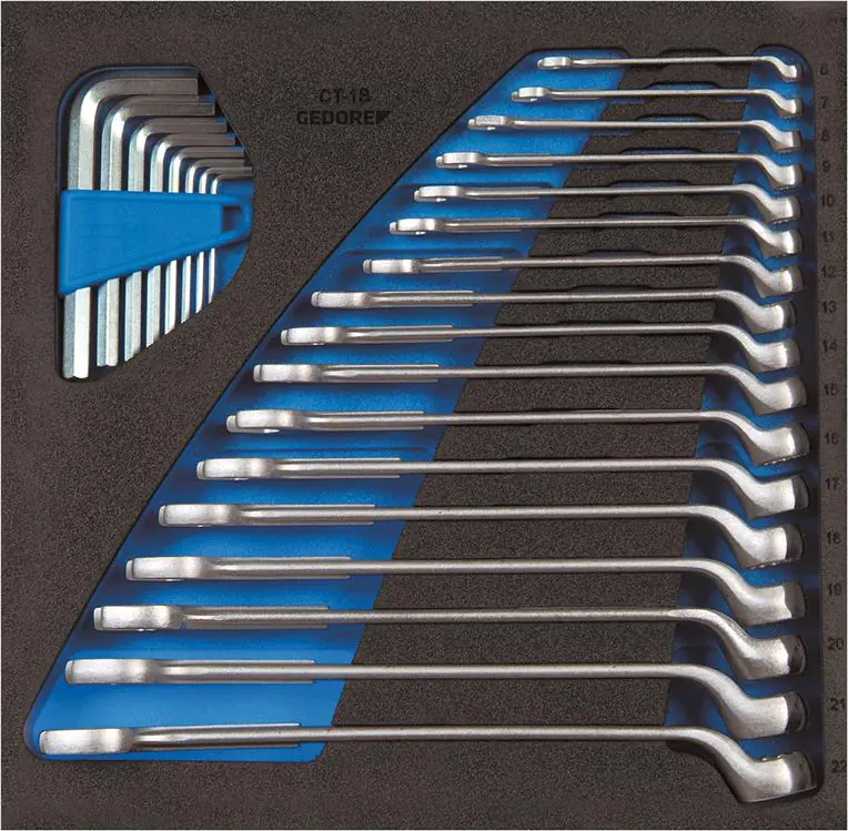 17 kluczy płasko-oczkowych 6; 7; 8; 9; 10; 11; 12; 13; 14; 15; 16; 17; 18; 19; 20; 21; 22 mm