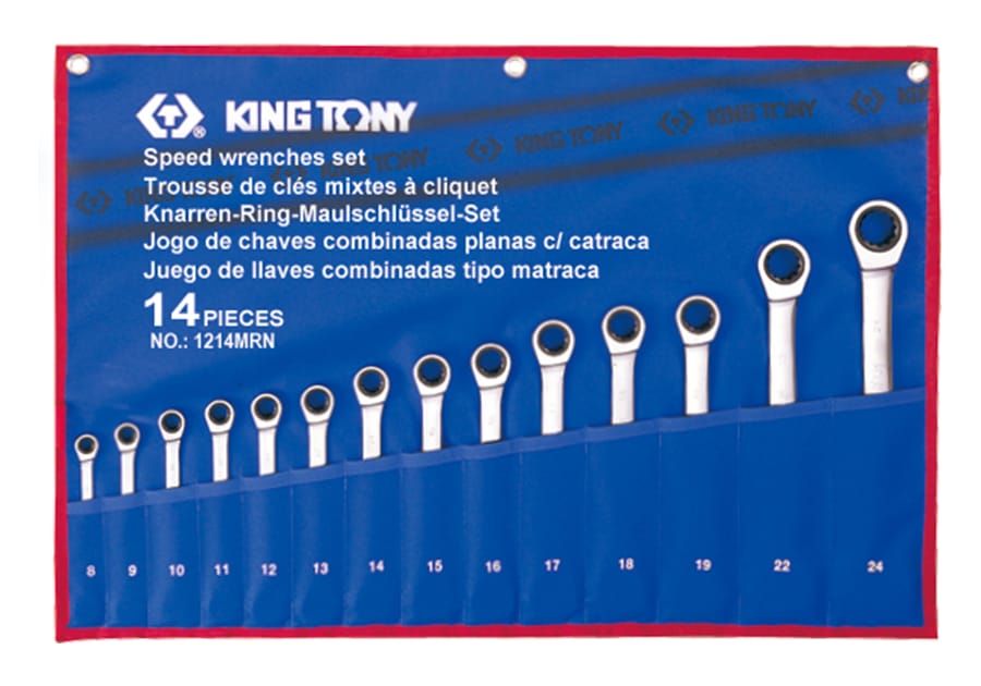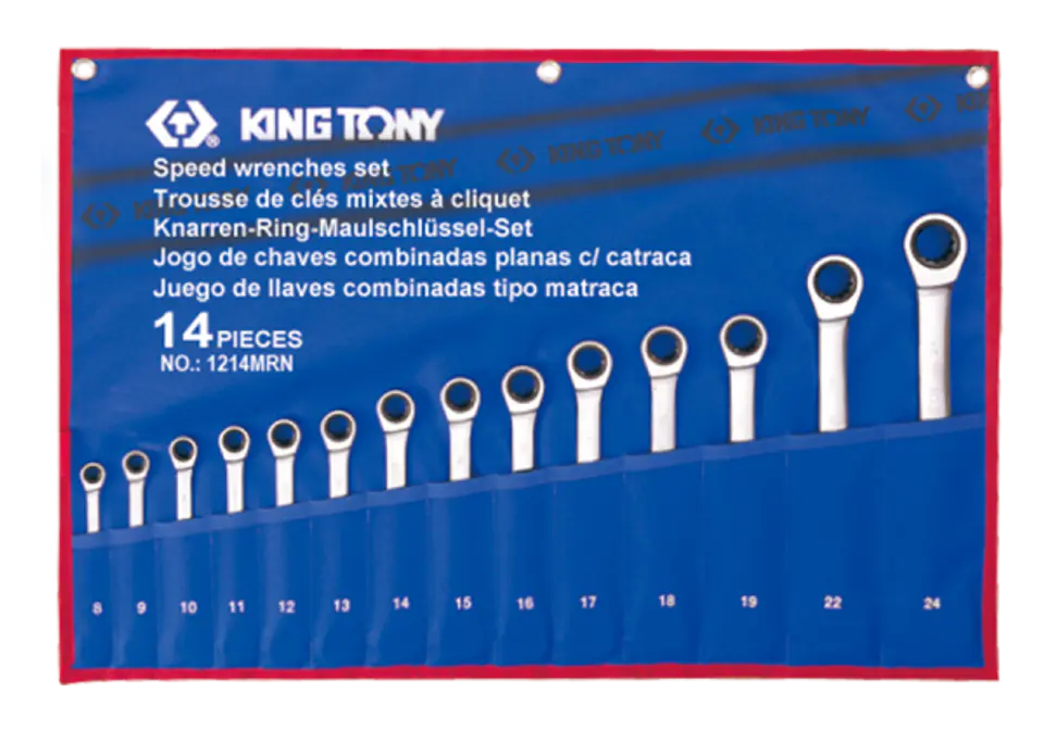 ZESTAW KLUCZY PŁASKO-OCZKOWYCH Z GRZECHOTKĄ JEDNOKIERUNKOWĄ 14cz. 8 - 24mm, ETUI King Tony
