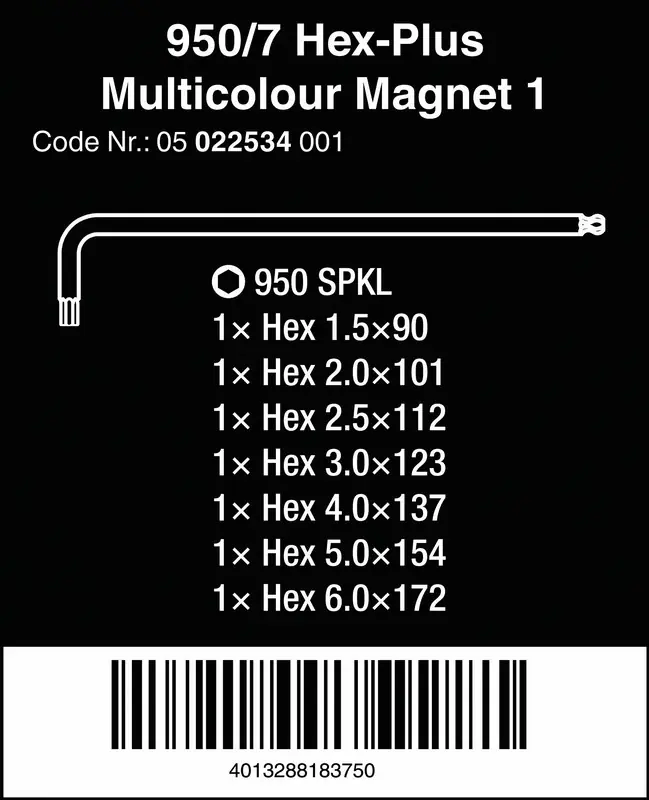 950/7 Hex-Plus Multicolour Magnet 1 Zestaw kluczy trzpieniowych z kulką, BlackLaser, metrycznych, z magnetyzerem, 7 cz