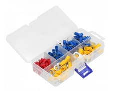 Zestaw końcówek izolowanych, oczkowych do zaciskania na końcach przewodów typu linka.Pozwala na wykonanie estetycznego i bezpiecznego zakończenia przewodu oczkiem, umożliwiającym połączenie śrubowe gwintowane. Produkt wykonany został z miedzi pokrytej warstwą cyny. Zawiera 120 elementów ? 1mm? x M4: 25 szt.; 2,5mm? x M4: 20 szt.; 2,5mm? x M5: 20 szt.; 2,5mm? x M6: 20 szt.; 6mm? x M6: 20 szt.; 6mm? x M8: 20 szt.
