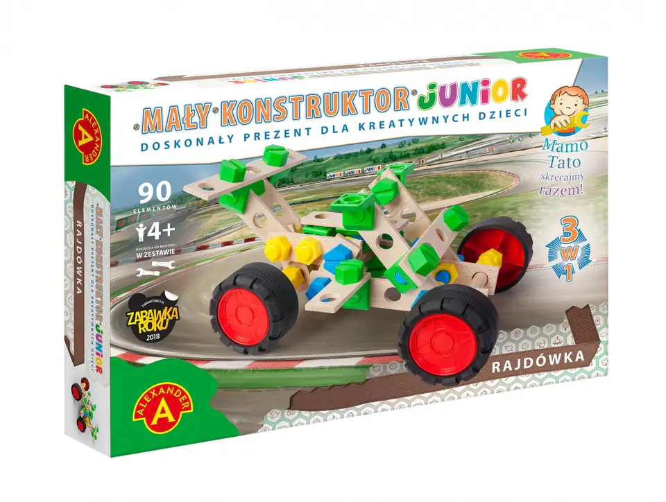 Mały Konstruktor Junior 3w1 - Rajdówka to idealna zabawka dla przyszłych inżynierów i nie tylko. Ten zestaw konstrukcyjny do samodzielnego montażu pozwoli dzieciom rozwijać swoje zdolności manualne, wyobraźnię przestrzenną, umiejętności techniczne i cierpliwość.
