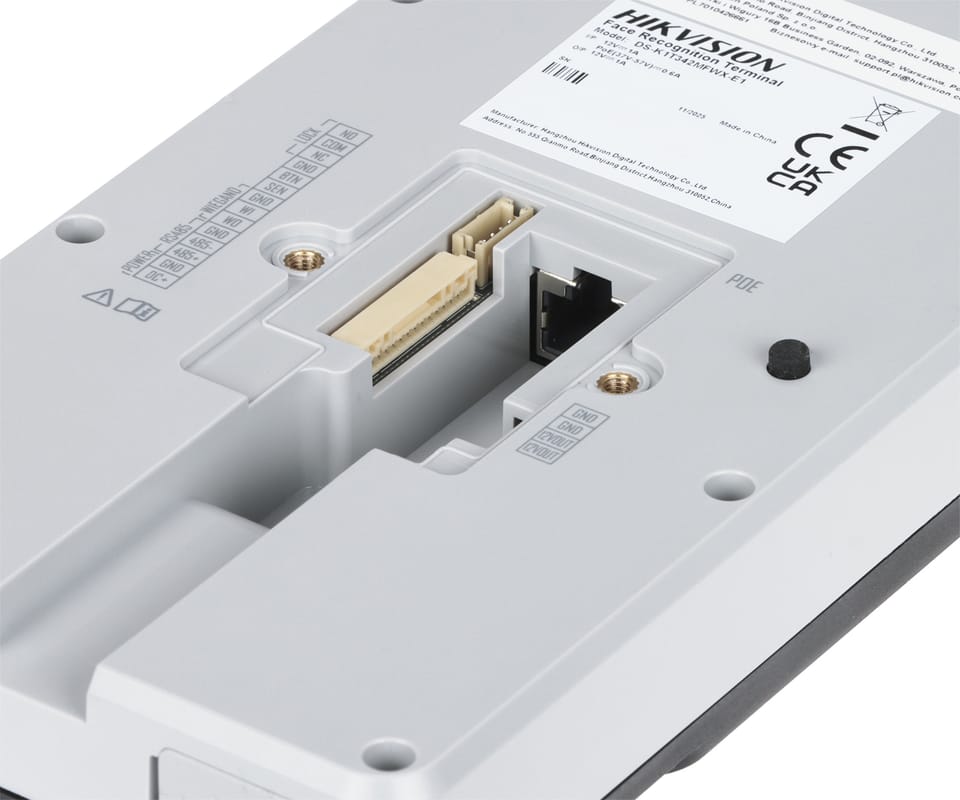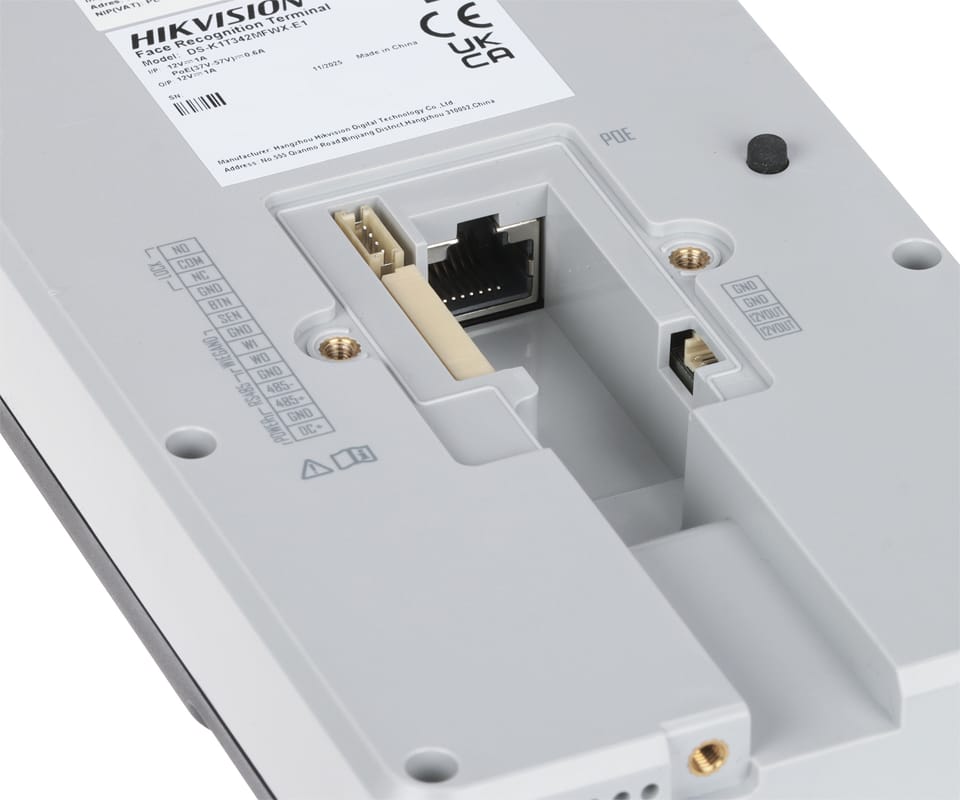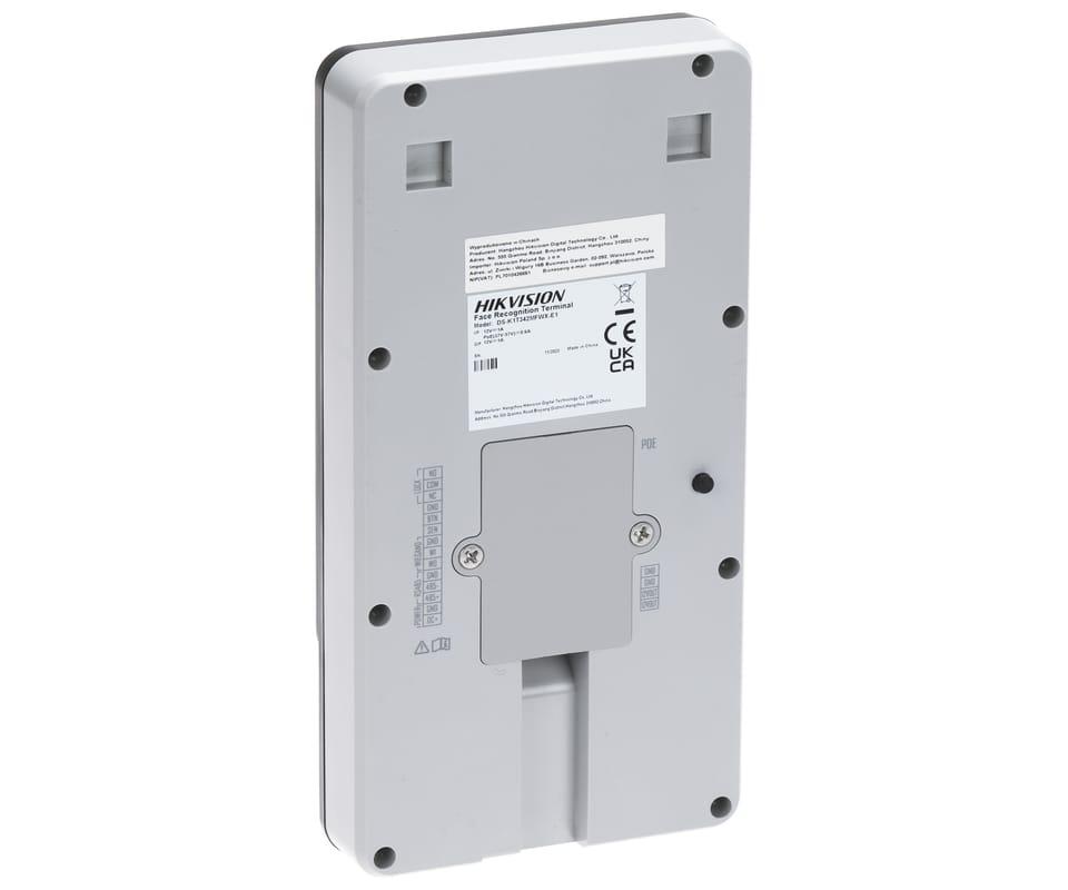 Hikvision DS-KAS342 to zestaw kontroli dostępu „touch-free” dla jednych drzwi, zawierający terminal rozpoznawania twarzy DS-K1T342MFWX-E1 (z czytnikiem kart RFID oraz linii papilarnych), zworę elektromagnetyczną DS-K4H255S z uchwytem DS-K4H255-LZ, bezdotykowy przycisk wyjścia DS-K7P07 oraz 3 karty M1. Terminal obsługuje do 1500 twarzy, 3000 odcisków i 3000 kart, a rozpoznawanie twarzy działa z dystansu 0.3-1.5 m z deklarowaną skutecznością ≥99% i czasem , także dla twarzy w masce. Zasilanie realizowane jest przez PoE (802.3at), z możliwością równoczesnego zasilenia zwory 12V DC/1A.