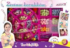 Zestaw koralików plastikowych mix kolorów i kształtów op. ok. 150szt.+2x 120cm żyłka PJ-1978 ALIGA