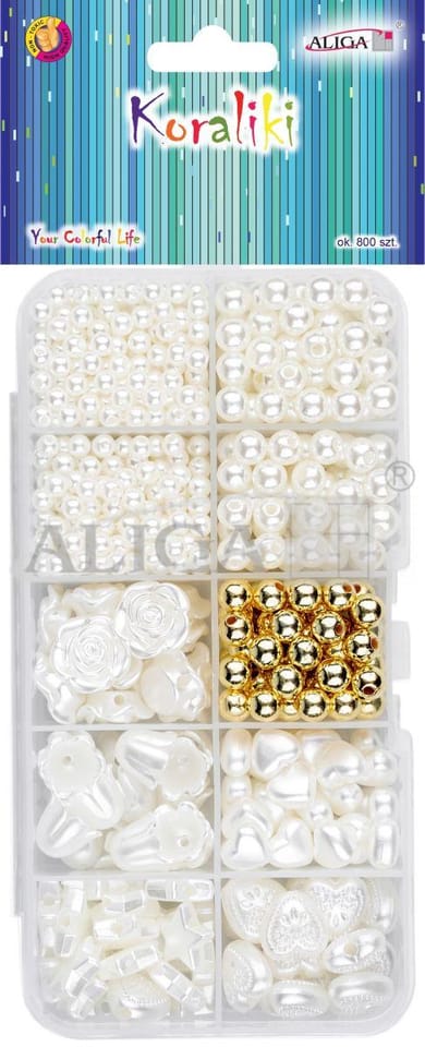 Zestaw koralików plastikowych w pudełku mix kształtów i kolorów ok.800szt. PJ-1120 ALIGA