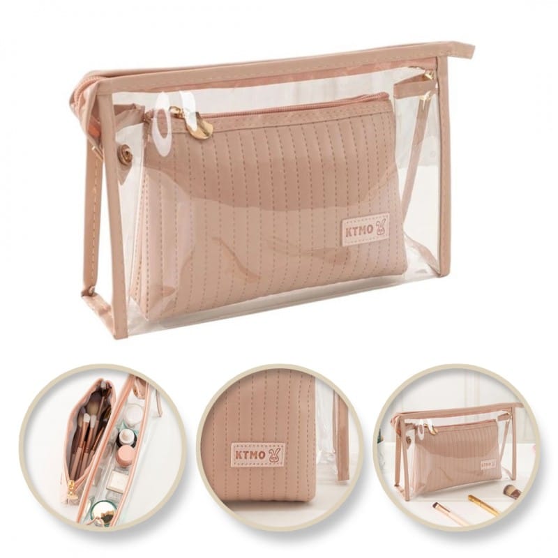 Zestaw kosmetyczek 2w1 Pudrowy Róż transparentna KS102WZ2
