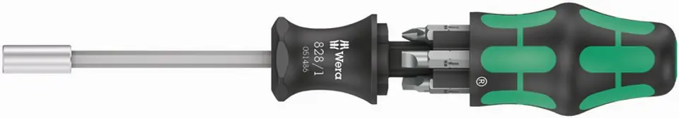 Magazynek do bitów zintegrowany w rękojeści, 6 ciągliwo-twardych bitów do uniwersalnego zastosowania.