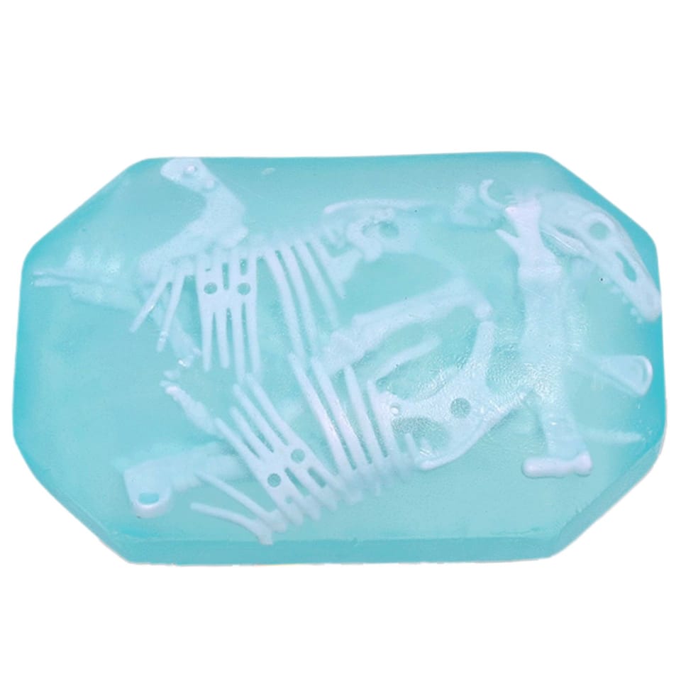 W pierwszym etapie dziecko wykorzystuje dołączone narzędzia, aby wydobyć szkielety ukryte w mydle. Proces ten wspiera rozwój zręczności, koncentracji oraz cierpliwości. Następnie pozostałe fragmenty mydła należy roztopić w ciepłej wodzie i przelać do specjalnej foremki w kształcie dwóch dinozaurów. Po wystudzeniu masa twardnieje i powstają nowe, kreatywne mydełka, które można wykorzystać podczas codziennej pielęgnacji.