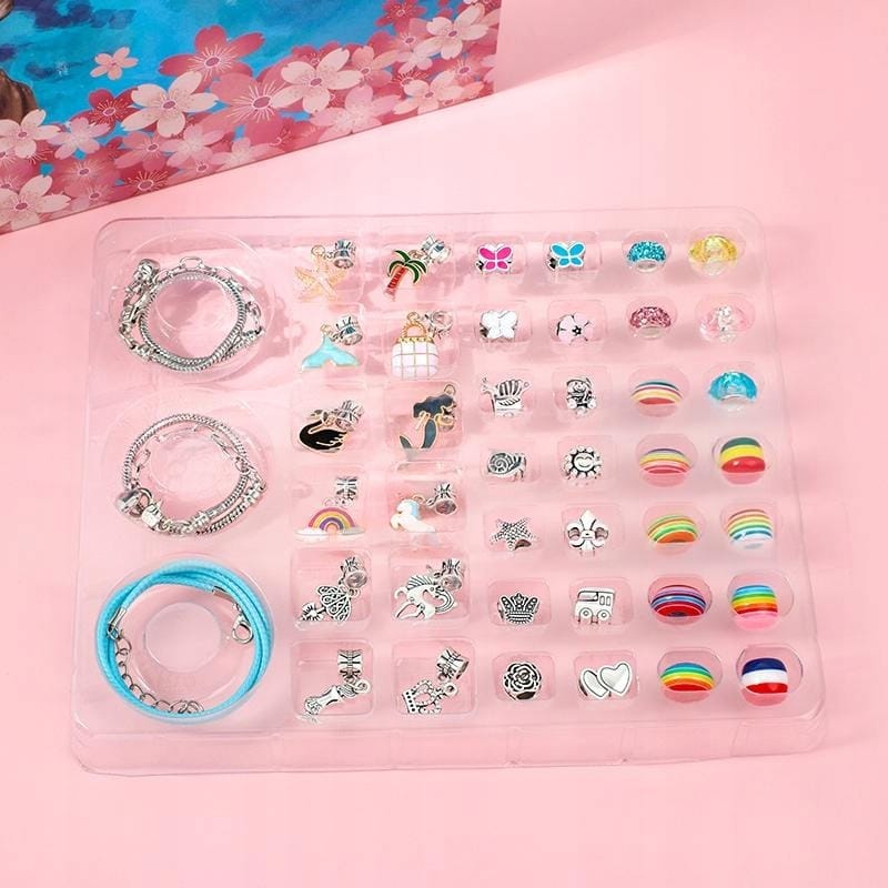 Zestaw biżuteryjny w ozdobnym pudełku. Zawiera 43 elementy: 40 zawieszek, 2 metalowe bransoletki o dł. 21cm, 1 woskowany naszyjnik o dł. 50cm, Wymiary pudełka: 21cm x 18cm x 2,5cm.__allmix_block,.__allmix_image{width:100%;display:inline-block;}.__allmix img{width:auto;max-width:100%;display:inline-block}.__allmix_block{margin-bottom:50px}.__allmix_block:first-child div{padding-top:0}.__allmix_block:last-child{margin-bottom:0}.__allmix_block_column{width:calc(50% - 25px);display:inline-block;vertical-align:middle;padding:25px;text-align:left}.__allmix_block div:first-child{padding-left:0}.__allmix_block div:last-child{padding-right:0}@media (max-width:767px){.__allmix_block div{width:100%;padding:0}.__allmix_block div:first-child{margin-bottom:25px}}.__allmix_image{text-align:center!important}