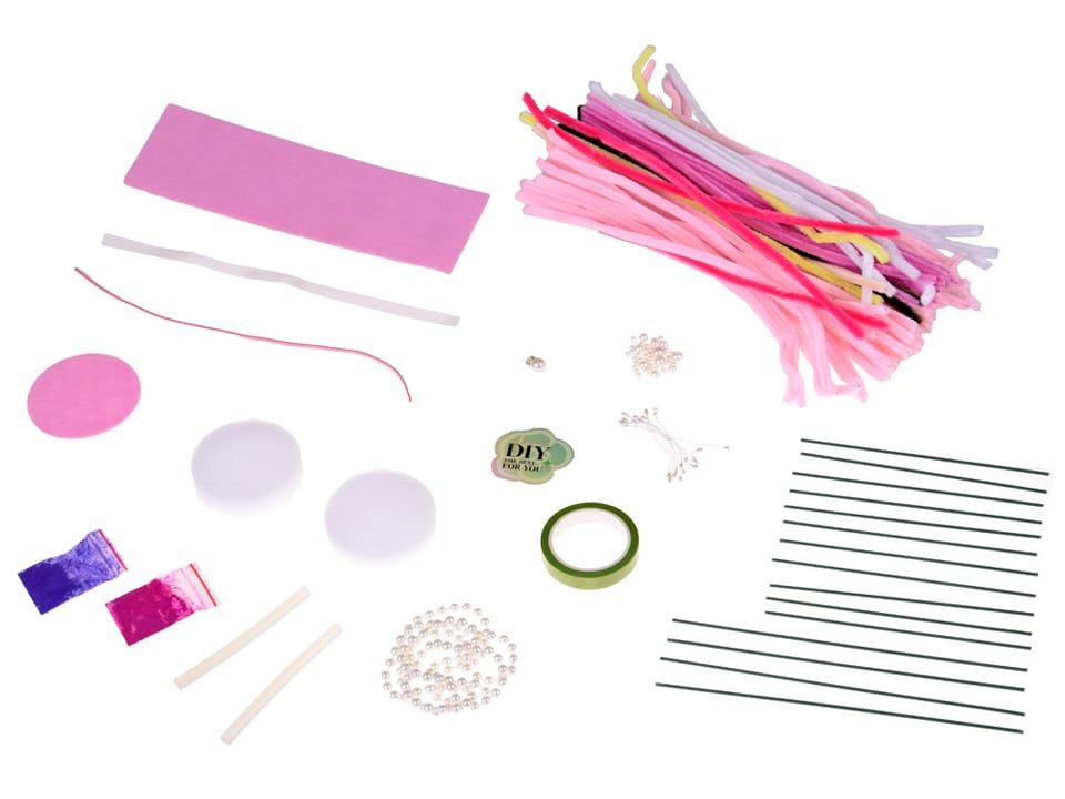 Stwórz własną, romantyczną kompozycję kwiatową z zestawem kreatywnym DIY! Ten uroczy komplet pozwala samodzielnie wykonać dekoracyjny bukiet z różowych kwiatów, wykorzystując kolorowe druciki, koraliki, filc oraz inne ozdobne dodatki.