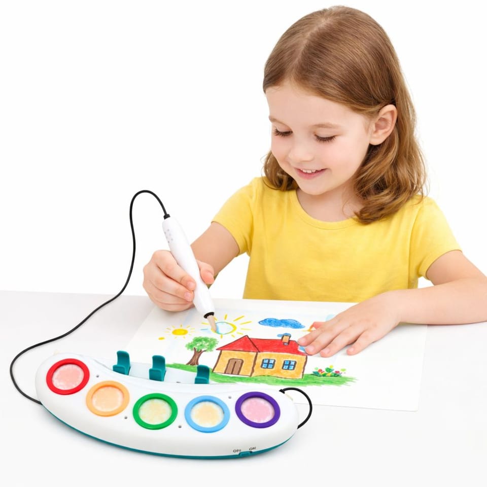 Zestaw wykorzystuje innowacyjną technologię świetlnego długopisu, który świeci w różnych kolorach dopasowanych do wybranego tuszu. Transparentny tusz rozwija kolor dopiero na specjalnym papierze, dzięki czemu rysowanie jest czyste i bezpieczne dla otoczenia. Dzięki temu dziecko może tworzyć rysunki bez obaw o zabrudzenie ubrań, biurka czy mebli.