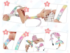 Naszą propozycją na kreatywne spędzanie czasu dla małych fanek syrenek jest zestaw z kategorii "zrób to sam". W środku znajduje się aż 6 pastelowych opasek oraz różne, piękne zdobienia, którymi można udekorować swoje opaski. Gwarantujemy, że dzięki ozdóbką, każda z nich będzie inna i wyjątkowa.