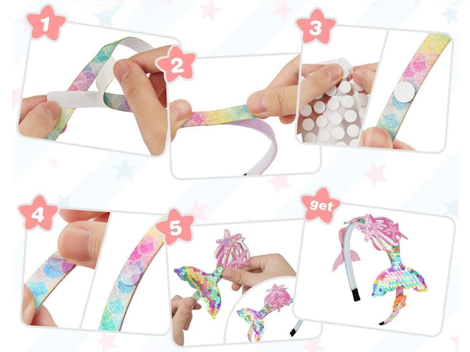 Zestaw będzie wspaniałym, wymarzonym prezentem dla dziewczynek uwielbiających ozdoby do włosów, fanek syrenek, jak i również doskonała okazja do wspólnego spędzenia czasu z rodzicem, rodzeństwem lub koleżankami. To także świetny pomysł na zajęcia podczas dziecięcych przyjęć - każda dziewczynka może stworzyć własną opaskę i zabrać ją do domu jako pamiątkę!
