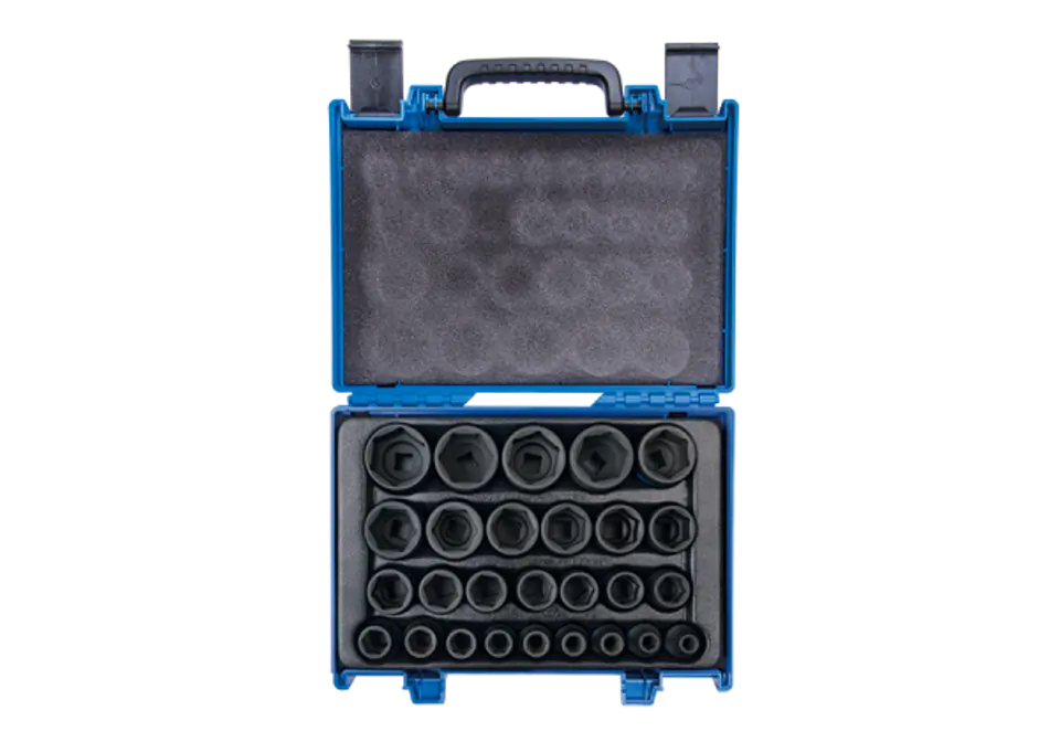 W zestawie nasadki w rozmiarach: 8, 9, 10, 11, 12, 13, 14, 15,16, 17, 18, 19, 20, 21, 22, 23, 24, 25, 26, 27, 28, 29, 30, 32, 33, 34, 36 mm.Wytłoczka o wymiarach: 280 x 187 mm. Walizka z wytrzymałego tworzywa ABS, wymiary: 286 x 193 x 66 mm.