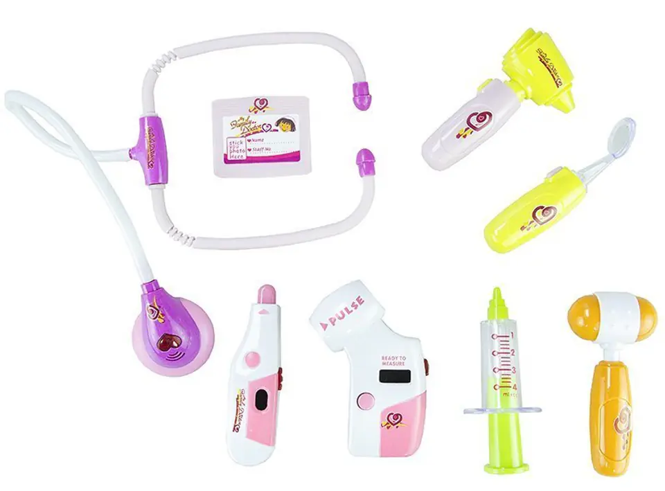 Ten wieloelementowy zestaw składa się z wszystkich narzędzi, które konieczne są w pracy lekarza. Zabawka utrzymana jest w dziewczęcej, różowej kolorystyce, składającej się z pastelowych kolorów, dzięki czemu będzie świetnym przedmiotem dla dziewczynki marzącej o karierze lekarza w przyszłości.