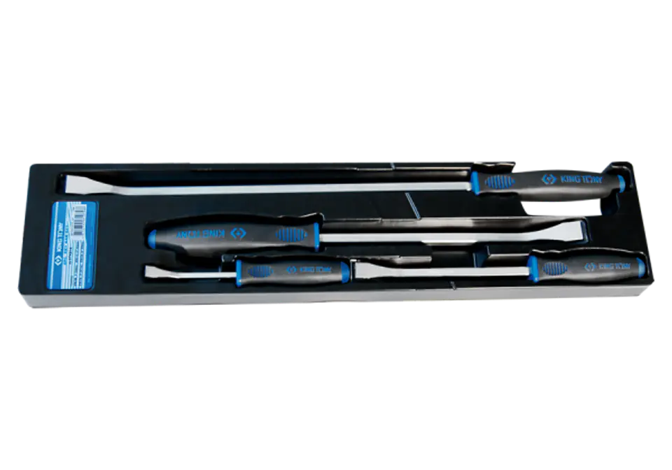 Zestaw łyżek montażowych 4 cz. King Tony 9TK014. W zestawie 4 łyżki montażowe wykonane z wysokiej jakości stali stopowej chromowo-wanadowej utwardzanej i hartowanej o długościach całkowitych: 204 mm, 312 mm, 458 mm, 608 mm. Ergonomiczna rączka wykonana jest z tworzywa PP+TPR. Narzędzia te są bardzo przydatne przy wielu pracach montażowych i demontażowych, stosowane do podważania elementów.