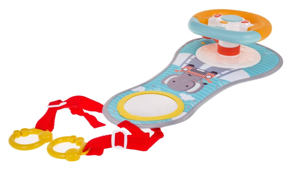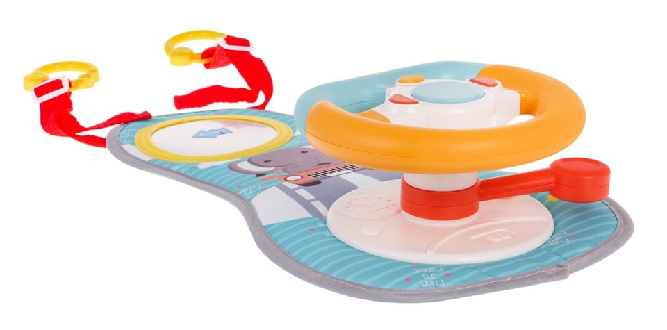 | Interaktywny zestaw dla dzieci już od 18 miesiąca życia umili dziecku czas podczas podróży. Twój maluch poczuje się jak prawdziwy kierowca i będzie mógł naśladować ruchy rodzica podczas jazdy. Zestaw przeznaczony jest tylko dla dzieci siedzących przodem do kierunku jazdy, nie należy używać w przypadku niemowląt skierowanych tyłem do kierunku jazdy. Zestaw łatwo przyczepia się do zagłówka siedzenia. Zabawka stymuluje rozwój zmysłów dziecka poprzez dźwięki i światła. Zabawka zasilana jest bateriami typu 3 x AA 1,5V (brak w zestawie). | |