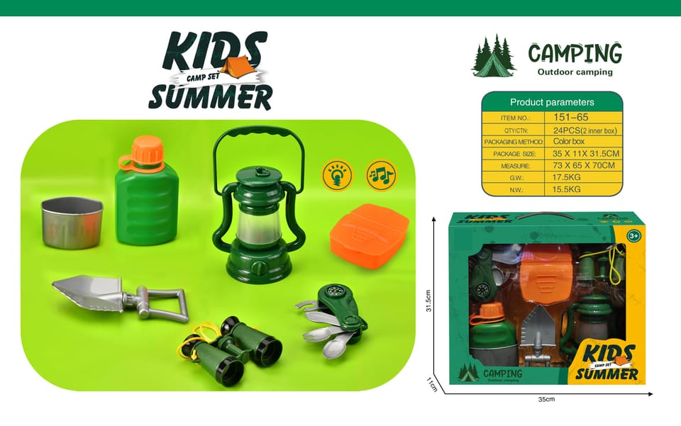 | Zestaw małego odkrywcy, dla ciekawych świata dzieci od 3-go roku życia. W skład zestawu wchodzi lampa, lornetka, niezbędnik, manierka, pojemnik na żywność, łopatka. Lampa zasilana jest bateriami typu 3 x AG13 (w zestawie) i posiada oświetlenie. Funkcje zestawu:- przeznaczony dla dzieci od 3-go roku życia,- zawiera wszystko, co niezbędne małemu odkrywcy,- lampa z oświetleniem. | |