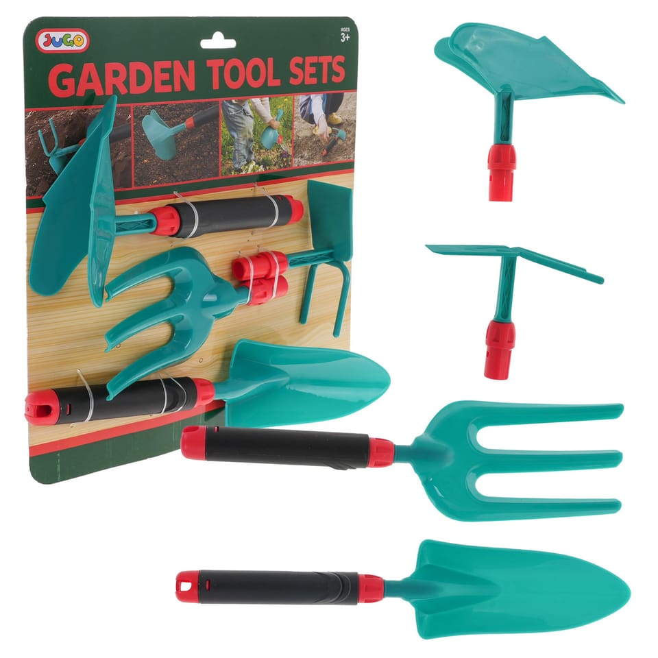 | Zestaw bezpiecznych narzędzi ogrodniczych dla dzieci od 3-go roku życia. Zestaw zawiera wszystko, co niezbędne do pracy w ogrodzie. Narzędzia są bezpieczne, nie posiadają ostrych krawędzi, a ich rozmiar idealnie dopasowano do małych rączek. Dodatkowo rękojeści narzędzi można zdejmować. Zestaw wykonany w uniwersalnej kolorystyce, idealny zarówno dla chłopców, jak i dziewczynek. | |