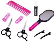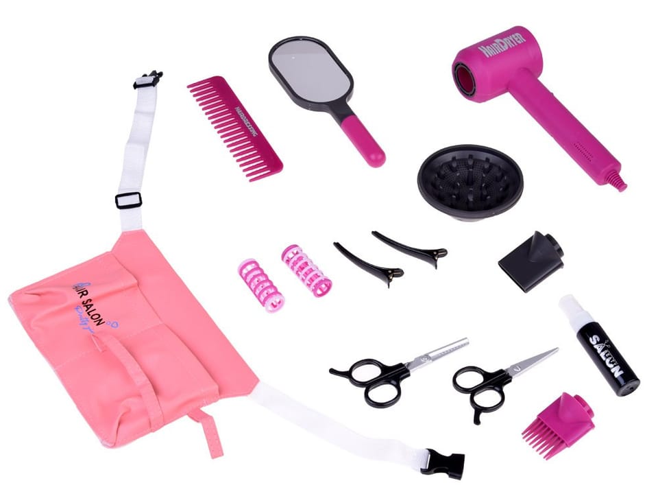 Zestaw dla małej fryzjerki - to zestaw akcesoriów idealny dla każdej małej dziewczynki która marzy aby zostać stylistką fryzur, uwielbia bawić się włosami i chce otworzyć swój mini salon fryzjerski w swoim pokoju. Kolorowy zestaw pozwoli na realistyczną zabawę, pełną ekscytacji i uśmiechu. Dobra zabawa z mamą, ciocią babcią czy przyjaciółkami gwarantowana. Komu tym razem mała fryzjerka zakręci włosy na wałki?