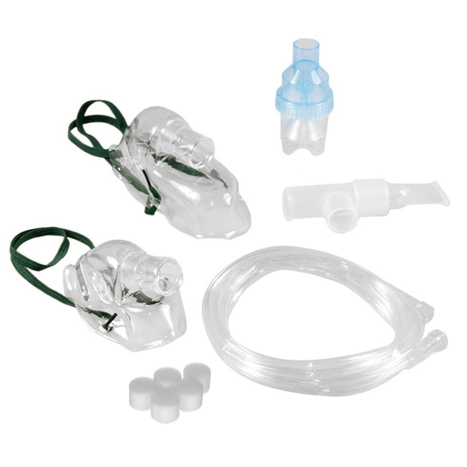 W skład zestawu wchodzi zbiornik na lek, który umożliwia precyzyjne podawanie substancji leczniczych, maska dla dorosłych i maska dla dzieci dostosowane do różnych grup wiekowych, a także ustnik dla osób preferujących inhalację bez maski. Przewód powietrza o odpowiedniej długości zapewnia komfort użytkowania, a dołączone 5 filtrów dba o czystość i skuteczność terapii.