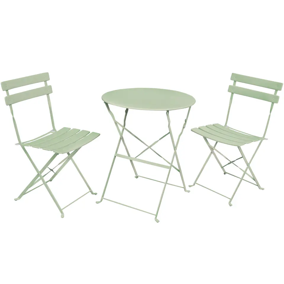 Zestaw mebli balkonowych ORION to niezawodny towarzysz relaksu na świeżym powietrzu. Dzięki solidnej metalowej konstrukcji w kolorze zielonym, ten zestaw złożony z dwóch designerskich krzeseł i uroczego, okrągłego stolika zdobiącego opalony taras czy ziołowy balkon, z pewnością przetrwa wiele sezonów.
