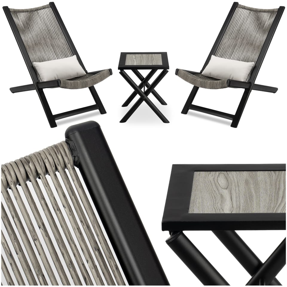 Zestaw mebli tarasowych CHILL ONYKS leżaki i stolikPrzeznaczenie: na taras, balkon | Kolor stelaża: onyksZestaw doskonały na prezent!⭐️ Najwyższa jakość materiałów⭐️ Nowoczesny design⭐️ Ergonomiczne i wygodne fotele⭐️ Solidny składany stolik⭐️ Zakup bezpośrednio od producenta Zestaw mebli ogrodowych Chill to idealne rozwiązanie dla relaksu na świeżym powietrzu. Wykonane z trwałego tworzywa sztucznego i malowanej proszkowo stali, gwarantują wytrzymałość i długowieczność. W zestawie dwa wygodne fotele z miękkimi poduszkami oraz składany stolik. Doskonałe meble do ogrodu, tarasu lub balkonu. Dodatkowe poduszki zwiększają komfort użytkowania. Estetyczny i solidny wybór dla relaksu na świeżym powietrzu. Zalety✅Najwyższa jakość materiałów✅Nowoczesny design✅Idealny do ogrodu i na taras✅Doskonały komplet dla dwóch osób✅Ergonomiczne i wygodne fotele✅Solidny składany stolik z blatem imitującym drewno✅Doskonałe połączenie stylu, funkcjonalności i trwałości SpecyfikacjaMateriał: stal malowana proszkowo, tworzywo sztuczneSkład zestawu: dwa fotele, stolikPrzeznaczenie: ogród, taras, balkonWaga zestawu z opakowaniem: 21 kgMaksymalne obciążenie fotela: 100 kgMaksymalne obciążenie stolika: 10 kgIlość poduszek w zestawie: 2 szt WymiaryWymiary fotela:Wysokość: 74 cmSzerokość: 49 cmGłębokość: 80 cmWymiary stolika:Wysokość: 46,5 cmSzerokość: 38,5 cmGłębokość: 38,5 cm Informacje dodatkowePrzedstawione kolory należy traktować poglądowo - mogą odbiegać od rzeczywistych ze względu na różne ustawienia monitorów oraz proces obróbki zdjęć. Rzeczywiste wymiary mogą się różnić od podanych wyżej. Tolerancja błędów może wynosić +/- 5%.Marka:eHokeryKod produktu:064414MGKod EAN:5905523064414Wysokość fotela: 74 cmSzerokość fotela:49 cmWymiary stolika:46,5 x 38,5 x 38,5 cmRozkładane:tak