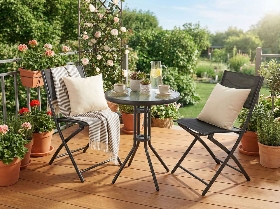 Zestaw mebli ogrodowych FLORA stolik + 2 krzesłaModel: FLORA | W zestawie: 2 krzesła i stolik | Zastosowanie: taras, balkon, ogród⭐️ Kompletny zestaw: stolik + 2 składane krzesła⭐️ Blat stolika ze szkła hartowanego⭐️ Meble odporne na warunki atmosferyczne⭐️ Kompaktowe wymiary⭐️ Zakup od producenta ✍️ Specyfikacja:Zawartość zestawu: stolik + 2 składane krzesłaMaksymalne dopuszczalne obciążenie krzesła: 120 kgMaksymalne dopuszczalne obciążenie stolika: 50 kgMateriał krzesła: polirattanBlat stolika: szkło hartowaneOdporność na warunki atmosferyczne: takMarka: eHokery✍️ Wymiary krzesła:Wysokość: 80 cmSzerokość: 44,5 cmWymiary siedziska: 41 x 36 cmWysokość siedziska: 48 cm✍️ Wymiary stolika:Średnica blatu: 50 cmWysokość: 70 cmInformacje dodatkowePrzedstawione kolory należy traktować poglądowo - mogą odbiegać od rzeczywistych ze względu na różne ustawienia monitorów oraz proces obróbki zdjęć. Rzeczywiste wymiary mogą się różnić od podanych wyżej. Tolerancja błędów może wynosić +/- 5%. Marka:eHokeryKod produktu:610182MGKod EAN:5904512610182Kolor mebli:czarnyMateriał:tworzywo sztuczneLiczba elementów zestawu:3Przeznaczenie:ogród | taras | balkonDo samodzielnego montażu:tak