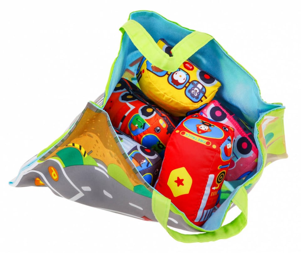 | Zestaw przeznaczony dla maluszków już od 12 miesiąca życia. Z pewnością przypadnie do gustu każdemu małemu fanowi motoryzacji. Składa się z 9 kolorowych, przyjemnych w dotyku i bezpiecznych autek oraz kolorowej miękkiej maty z ulicami i budynkami. Trzy autka szeleszczą po dotknięciu trzy dzwonią i trzy piszczą. Zabawka rozwija kreatywność i wyobraźnię Twojej pociechy. Na drugiej stronie maty znajdują się rzepy dzięki którym może być używana jako torba do przechowywania i przenoszenia autek. Matę i autka można prać w pralce w niskiej temperaturze, jest łatwa w utrzymaniu czystości. | |