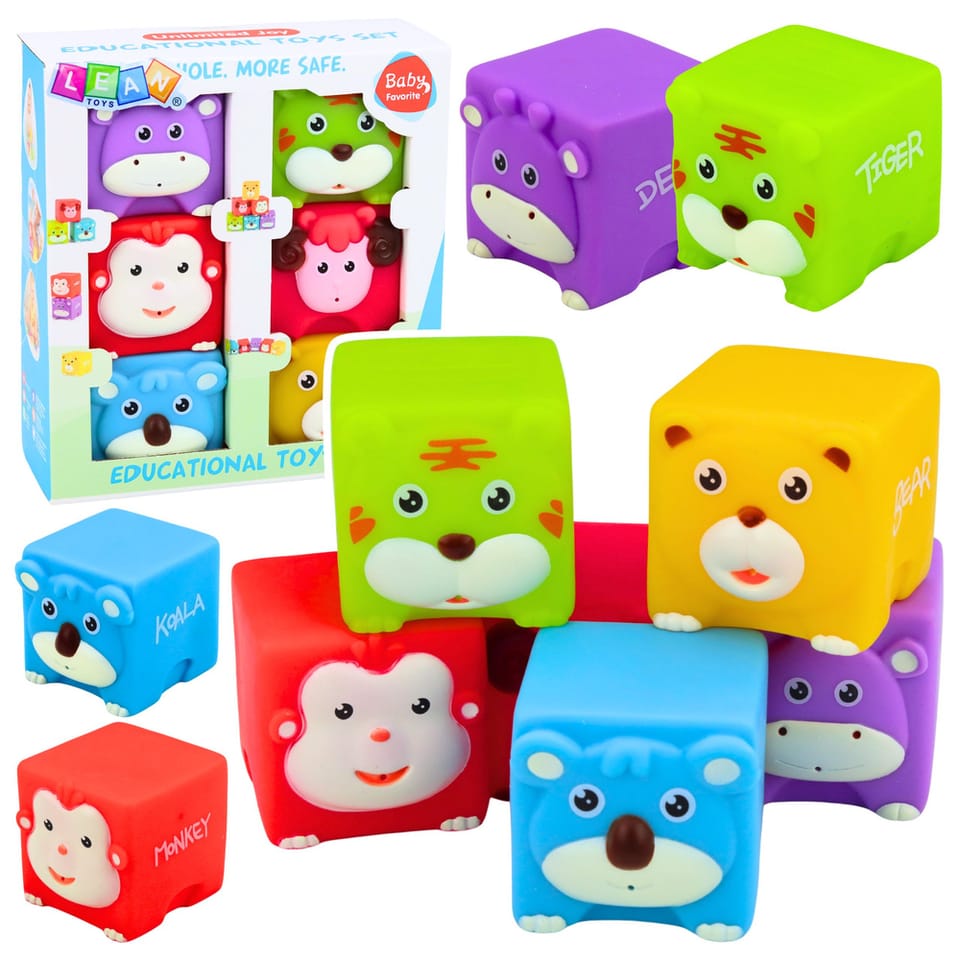 MIĘKKIE KLOCKI SENSORYCZNE ZWIERZĄTKA 6 SZT EDUKACYJNE