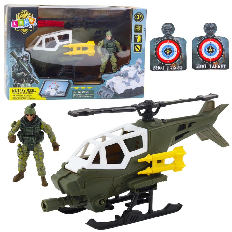 - Rodzaj zabawki: zestaw wojskowy z helikopterem i figurką