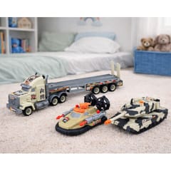 ZESTAW WOJSKOWY CIĘŻARÓWKA TIR CZOŁG PODUSZKOWIEC FIGURKA ŚWIATŁA DŹWIĘK