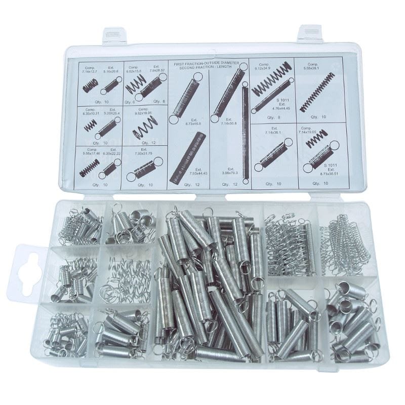 Zestaw sprężynek w 20 popularnych rozmiarach. Zawiera 200 sztuk.