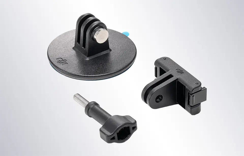 W uchwycie Quick-Release Adapter Mount dodano klips pozycjonujący, który zwiększa odporność na uderzenia. Baza samoprzylepna charakteryzuje się dużą powierzchnią kleju o silnej sile łączenia. Dzięki dużej powierzchni taśmy 3M na dole kamera może być bezpiecznie przymocowana do desek surfingowych, snowboardowych i innego sprzętu sportowego, dzięki czemu nadaje się do wielu dynamicznych scenariuszy.