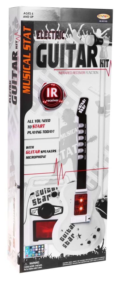 | Niepowtarzalna gitara elektryczna dla przyszłego gitarzysty wraz z mikrofonem w zestawie. Gitara to niezwykle inspirujący instrument muzyczny z grupy strunowych szarpanych, który odgrywa niezwykle ważną rolę w muzyce bluesowej, country, flamenco, rockowej oraz w wielu formach popu. Dziecko już w pierwszych latach życia wykazuje zainteresowanie zabawkami grającymi, tańczy, śpiewa, próbuje grać na prostych instrumentach. Obecność muzyki w rozwoju dziecka ma zdecydowanie pozytywny wpływ. Talent ujawniony w tak wczesnym okresie ma szansę znacznie się rozwinąć w przyszłości, dlatego też nie można przegapić tego momentu. Jeżeli Twoje dziecko z niewyobrażalnym zachwytem patrzy na gitarzystów, udaje, że gra na wyimaginowanej gitarze i ma poczucie rytmu - to może mieć talent do gry na każdej gitarze. Zabawka wyposażona jest w 6 metalowych strun, 3 tony gitary, 7 melodii i 12 krótkich solówek. | |