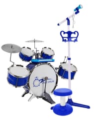 | - 1 bęben duży z pedałem do uderzania, - 2 średnie bębny, - 2 małe bębny, - 2 pałeczki, - 2 x talerze, - keyboard z mixerem, - uchwyt na telefon, - mikrofon na stojaku z podstawką na nuty, - kabel MP3, - krzesło. |