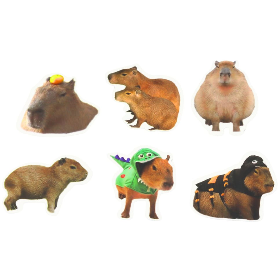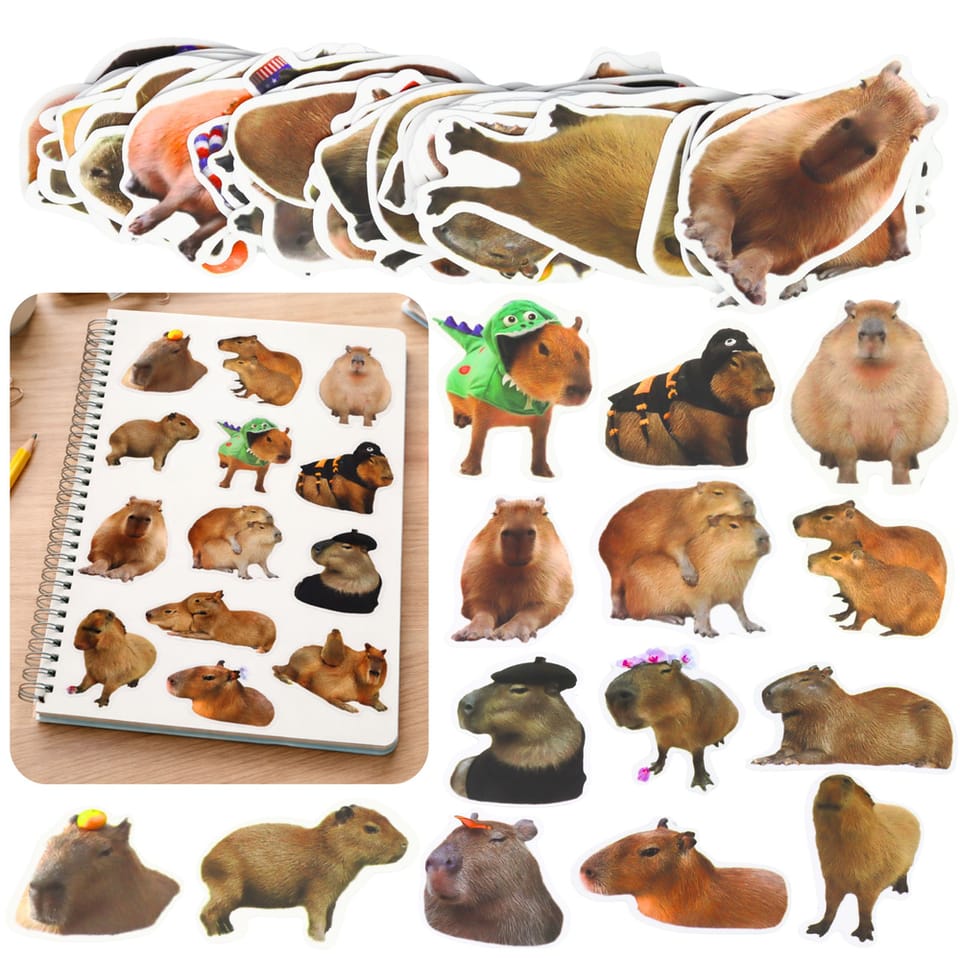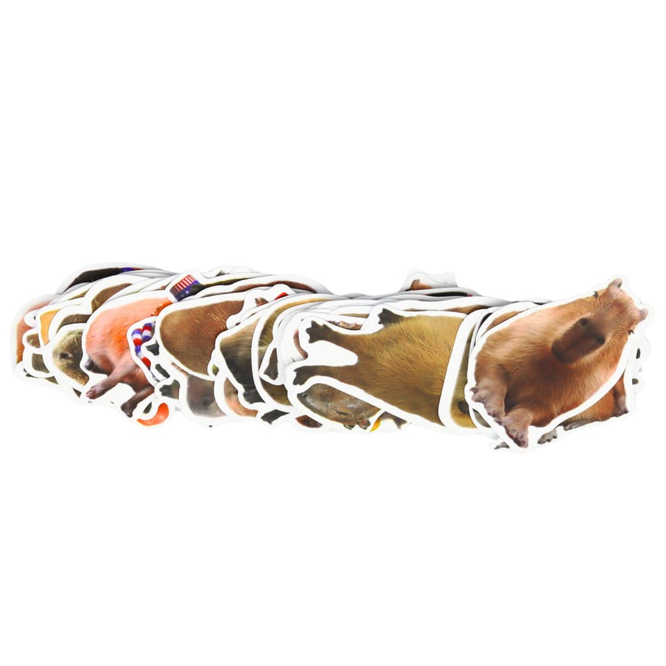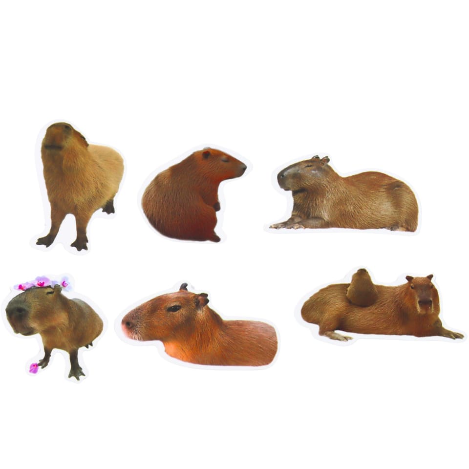 ZESTAW NAKLEJEK KAPIBARA PAPIEROWE PRAWDZIWE WIZERUNKI 50 SZTUK 6 - 7 CM