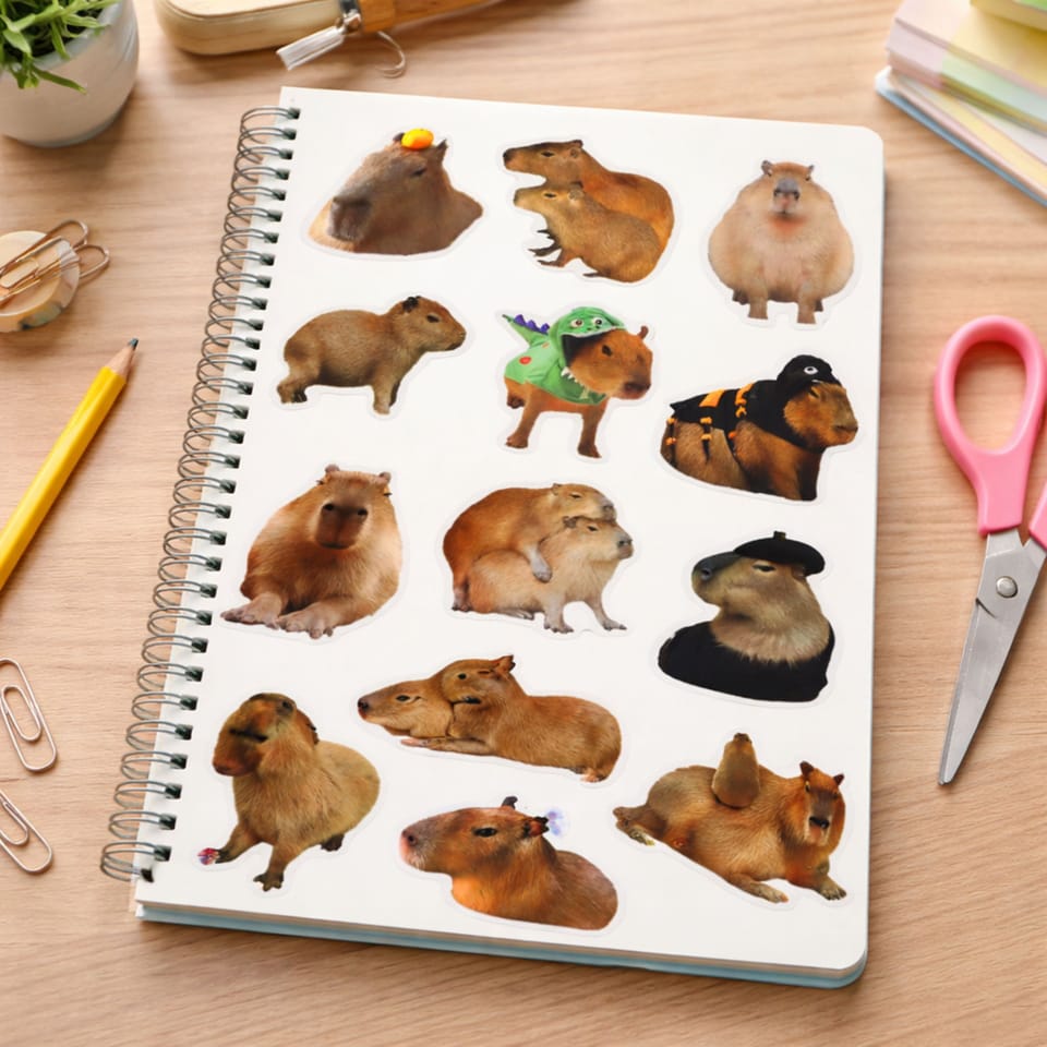 Zestaw papierowych naklejek z motywem kapibary to ciekawa i estetyczna propozycja dla dzieci oraz miłośników zwierząt. Naklejki przedstawiają wizerunki prawdziwej kapibary, odwzorowane w realistyczny sposób, co nadaje im naturalny i autentyczny wygląd. Dzięki temu zestaw doskonale sprawdzi się zarówno do zabawy, jak i do dekoracji zeszytów, notesów, prac plastycznych oraz materiałów edukacyjnych.