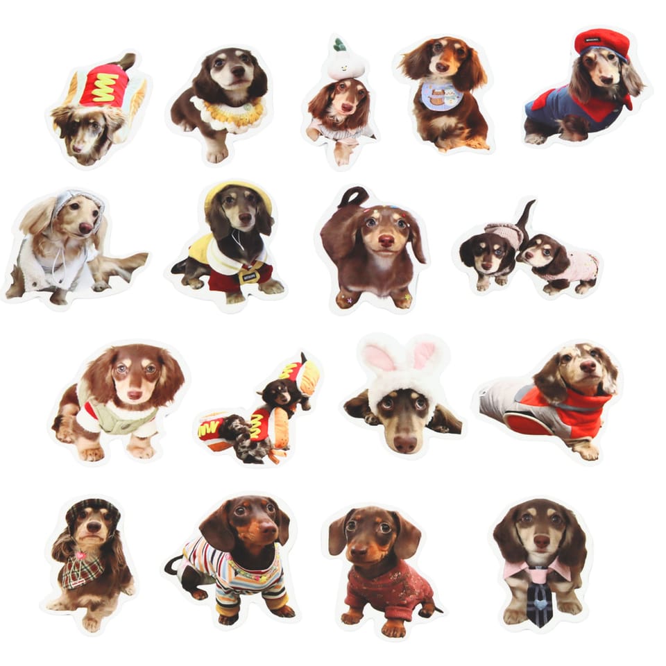 Zestaw 50 papierowych naklejek z uroczymi pieskami w typie spaniela to doskonała propozycja dla miłośników zwierząt. Grafiki przedstawiają słodkie pieski o dużych oczach i długich uszach, przypominające rasę spaniel, w różnych zabawnych i stylowych motywach. Pieski występują w ubrankach, czapkach, kostiumach oraz w naturalnych, sympatycznych pozach.