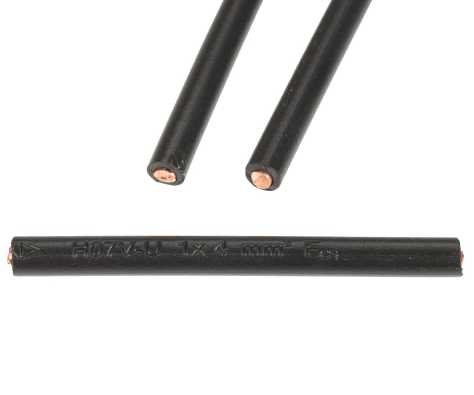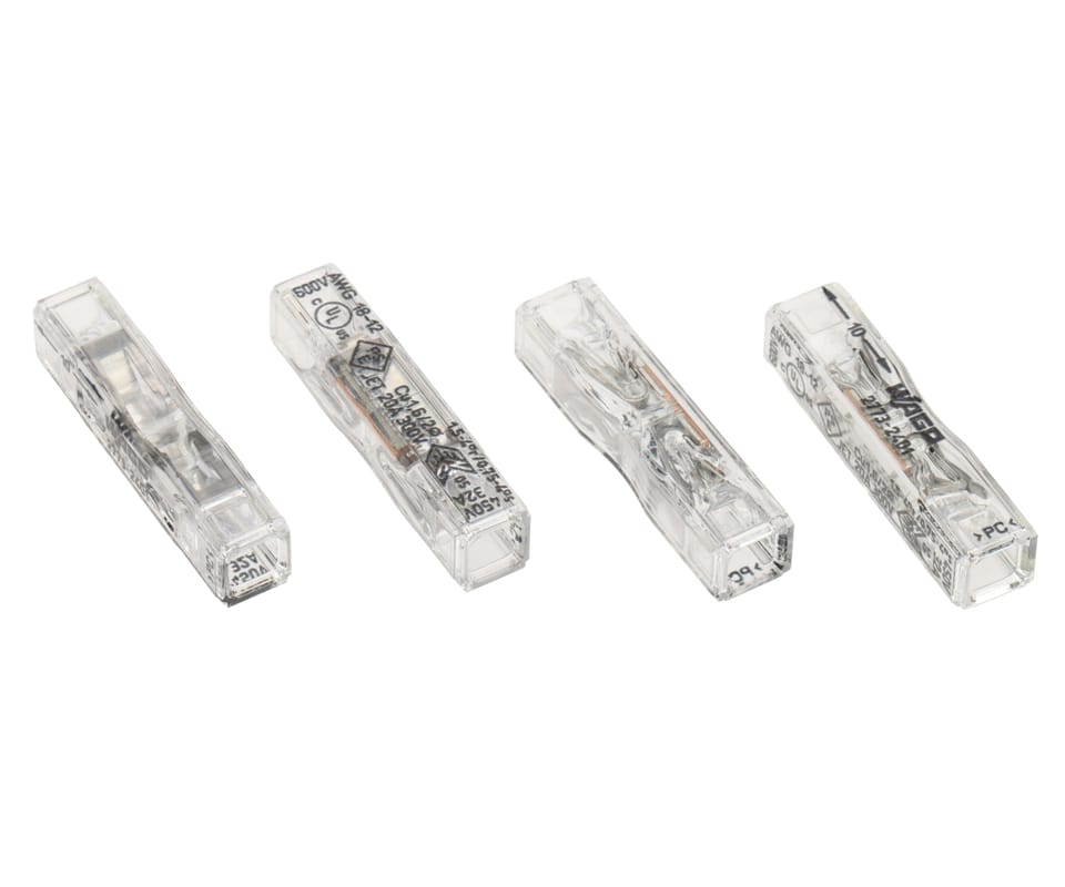 Zestaw zawiera sześć sztuk szybkozłączek przelotowych WAGO-2773-2401, trzy przewody jednodrutowe 4 mm² o długości 4 cm oraz termokurczliwą rurę z klejem o średnicy 17 mm i długości 16 cm