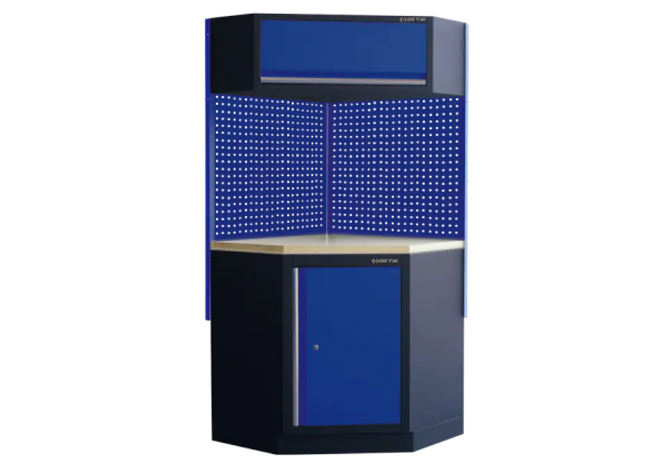 ZESTAW NAROŻNIKOWY DO MEBLI WARSZTATOWYCH Z BLATEM DREWNIANYM NIEBIESKI) King Ton