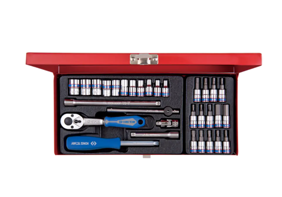 ZESTAW NARZĘDZI 1/4" 31cz. NASADKI 12-kąt. 4 - 13mm, T8 -T30, HEX 3 - 10 Z GRZECHOTKĄ I AKCESORIAMI, KASETA King Tony