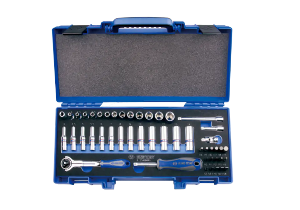 ZESTAW NARZĘDZI 1/4" 48cz. NASADKI DŁUGIE + KRÓTKIE, 6-kąt. 4 - 14mm, HEX 3 - 10, Z GRZECHOTKĄ I AKCESORIAMI, WALIZKA King Tony