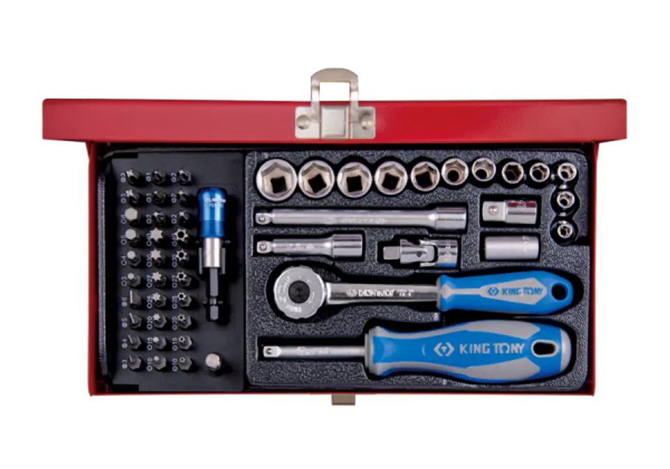 ZESTAW NARZĘDZI 1/4" 51cz. NASADKI KRÓTKIE, 6-kąt. 4 - 14mm, BITY 1/4" Z GRZECHOTKĄ I AKCESORIAMI, KASETA King Tony