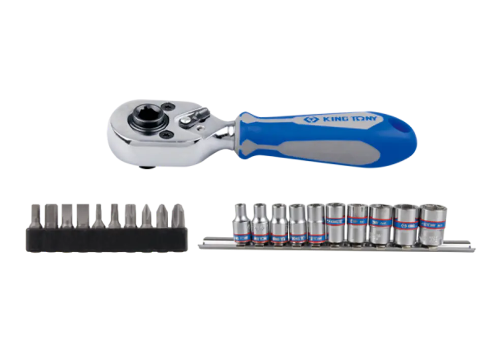 ZESTAW NARZĘDZI 1/4" NASADKI KRÓTKIE, BITY I GRZECHOTKA, 21 cz., King Tony